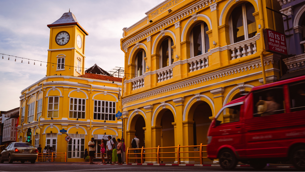 Located at the intersection of Phuket Rd and Phang Nga Rd is the iconic duo of Sino-Portuguese buildings – the old Standard Chartered Bank on one side and the old Phuket Town Police Station on the other.