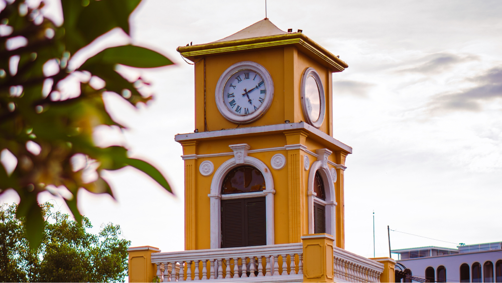 One of Phuket Town’s iconic structures, the Surin Clocktower is a relatively new addition to the list of Old Town landmarks if compared to the Standard Chartered Bank and the old Police Station.