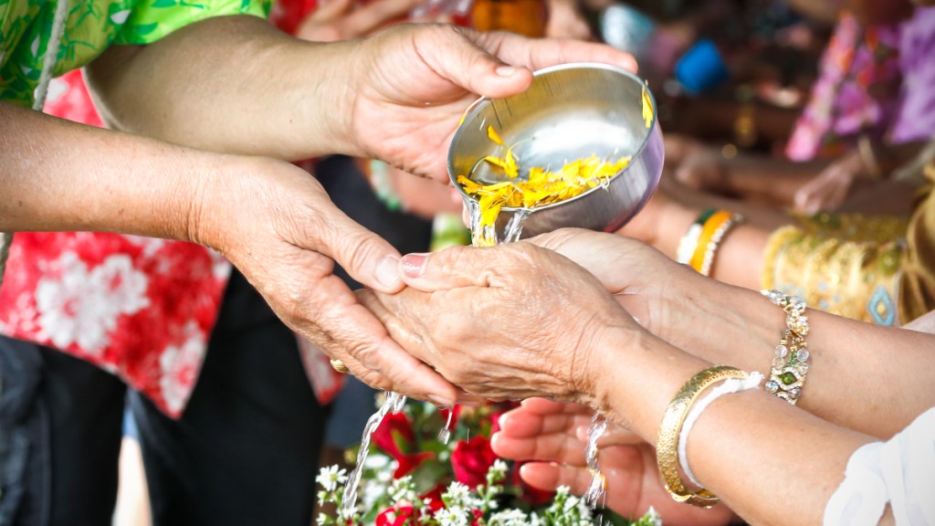 As many traditions include paying respect to elder family members, many Thais travel during Songkran to their home provinces to reunite with parents, grandparents, and other relatives.