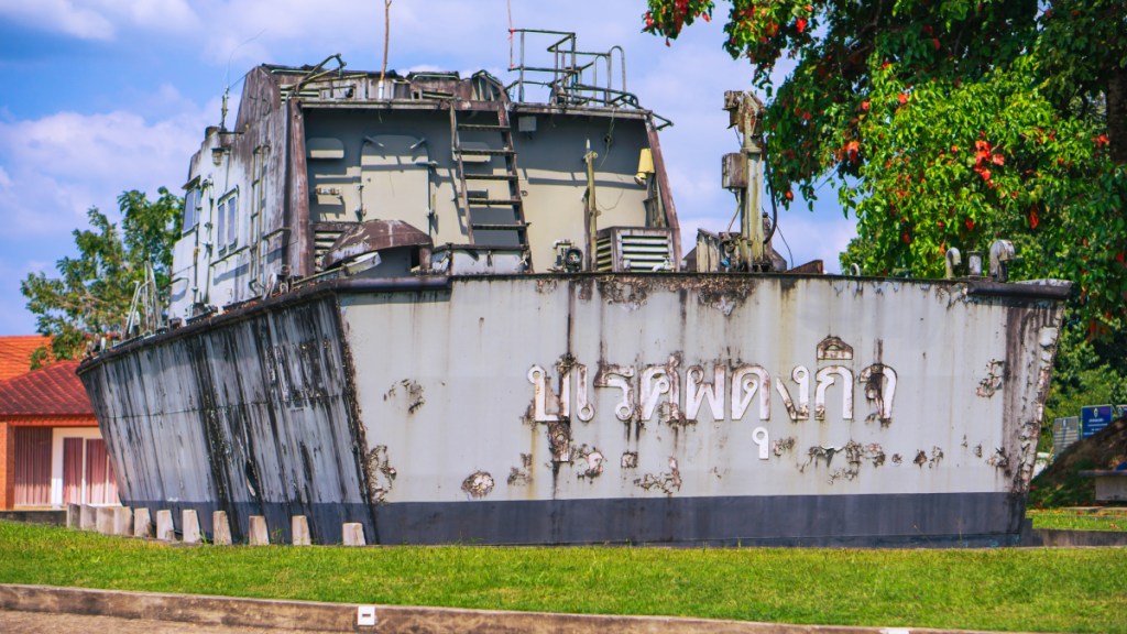 Standing as a silent sentinel in the heart of Phang Nga, Thailand, the Police Boat T813 is a powerful reminder of the devastating 2004 tsunami. Transformed from a symbol of safety to a stark testament to the event’s force, it now serves as a poignant memorial to those lost and a tribute to the community’s resilience.