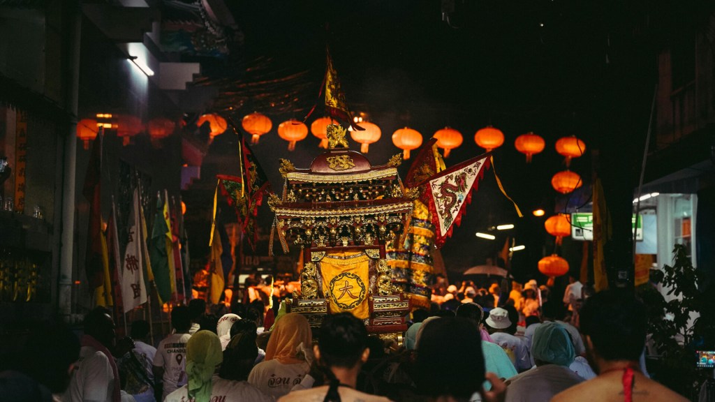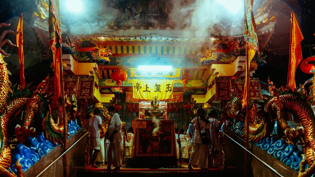- Nightly temple ceremonies include collective prayers and meals. Later in the festival, temples hold fire-walking, hot oil bathing, and blade-ladder climbing rituals for Ma Song. The coals, oil, and blades are real.